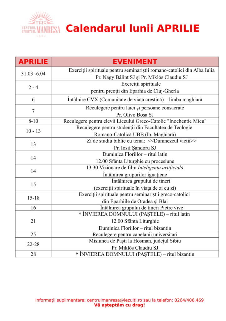 Activităţile din luna aprilie la Centrul Spiritual Manresa