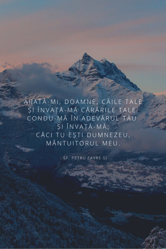 Arată-mi, Doamne, căile taleși învață-mă cărările tale.Condu-mă în adevărul Tău și învață-mă;căci Tu ești Dumnezeu, Mântuitorul meu.- Sf. Petru Favre SJ