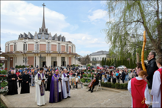 Am pornit apoi în procesiune în curtea catedralei la Calea Sfintei Cruci, condusă de ep. Iosif Păuleţ şi animată de grupul de tineri muzicieni ai catedralei: eram cu toţii invitaţi la reculegere în sunete de violoncel, flaut şi nai.