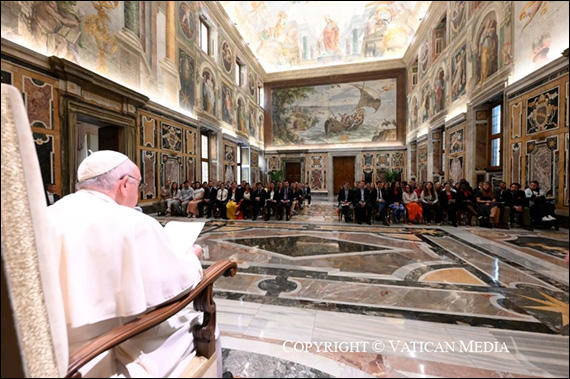 Admir curajul credinţei voastre, angajarea voastră şi mărturia voastră creştină într-o societate care, ştim, este tot mai secularizată. Este frumos a vedea tineri de vârsta voastră gata să se dedice proiectelor de evanghelizare şi să trăiască mesajul lui Cristos în mijlocul ocupaţiilor zilnice. Voi sunteţi nu numai viitorul Bisericii, nu, nu numai acela, ci mai ales prezentul; ea are nevoie de voi, pentru că Biserica este tânără: are nevoie de generozitatea voastră, de bucuria voastră, de voinţa voastră de a construi o lume diferită, impregnată de valorile de fraternitate, de pace, de reconciliere.