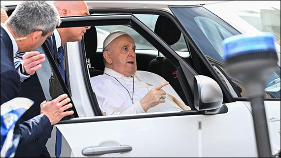 Papa a plecat după aceea din spitalul care pentru a doua oară l-a avut ca pacient la bordul unei maşini 500L albă, unde între timp s-a adunat un grup de persoane şi jurnalişti care l-au oprit pentru un salut şi o binecuvântare. Din spatele maşinii a venit o femeie cu soţul şi s-a apropiat de papa pentru a-i relata tragedia pe care amândoi au trăit-o cu puţine ore înainte odată cu moartea fiicei. Papa Francisc a ascultat cuvintele femeii care, printre lacrimi, continua să repete: “Mulţumim, mulţumim…”. Apoi a îmbrăţişat-o, strângând-o puternic la piept şi i-a dat un sărut. Acelaşi lucru l-a făcut cu soţul care, cu vocea ruptă de plâns, a spus: “Dumneavoastră aţi cunoscut-o pentru că în 2019 aţi venit la Casal Bertone şi aţi ţinut-o în braţe”. “Să ne rugăm pentru Angelica”, a şoptit papa, ţinând mâinile cuplului. Apoi le-a dat binecuvântarea sa şi mângâierea sa.