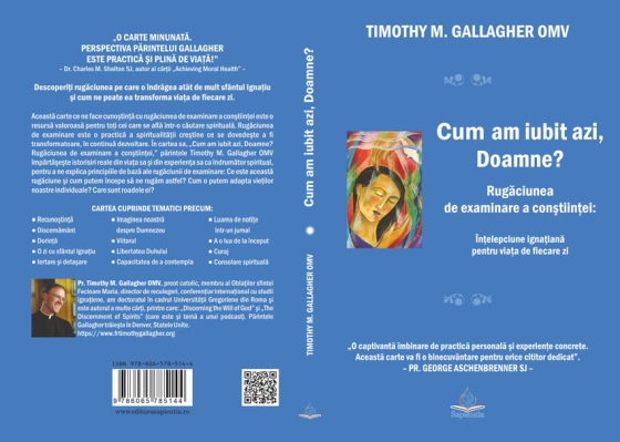 La Editura “Sapientia” a apărut de curând cartea: Cum am iubit azi, Doamne? Rugăciunea de examinare a conştiinţei: înţelepciune ignaţiană pentru viaţa de fiecare zi, scrisă de Timothy M. Gallagher OMV şi tradusă în limba română de Ioana Barcan. Cartea apare în colecţia “Spiritualitate”, în formatul 14×20 cm, are 222 pagini şi poate fi procurată de la Librăria Sapientia (librariasapientia.ro), precum şi de la celelalte librării catolice din ţară la preţul de 20 lei.