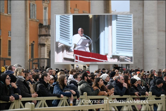 Şi să continuăm să ne rugăm pentru pace, în martirizata Ucraina, în Orientul Mijlociu – Palestina, Israel, Liban, acum Siria -, în Myanmar, Sudan şi oriunde se suferă din cauza războiului şi a violenţelor. Fac apel la guvernanţi şi la comunitatea internaţională, ca să se poată ajunge la sărbătoarea Crăciunului cu o încetare a focului pe toate fronturile de război.