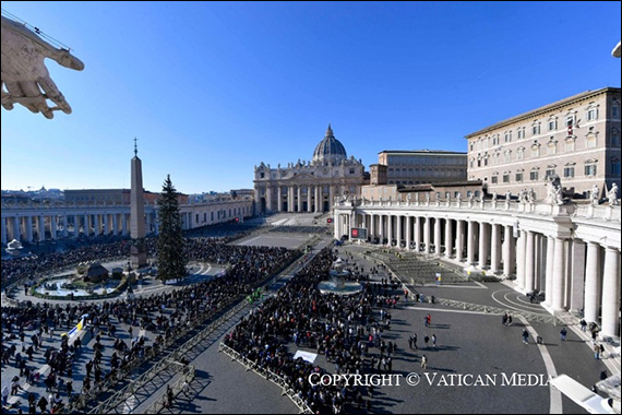Un bun-venit cordial vouă tuturor, romani şi pelerini. Astăzi adresez un salut special familiilor prezente aici şi celor conectate de acasă prin mijloacele de comunicare. Familia este celula societăţii, este o comoară preţioasă de susţinut şi de tutelat!