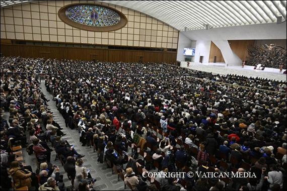 Mulţi dintre voi se află aici, la Roma, ca “pelerini ai speranţei”. Începem în această dimineaţă audienţele jubiliare de sâmbătă, care vor să primească şi să îmbrăţişeze în mod ideal pe toţi cei care, din toate părţile lumii, vin să caute un nou început. De fapt, Jubileul este un nou început, posibilitatea pentru toţi de a reporni de la Dumnezeu. Cu Jubileul se începe o viaţă nouă, o etapă nouă.