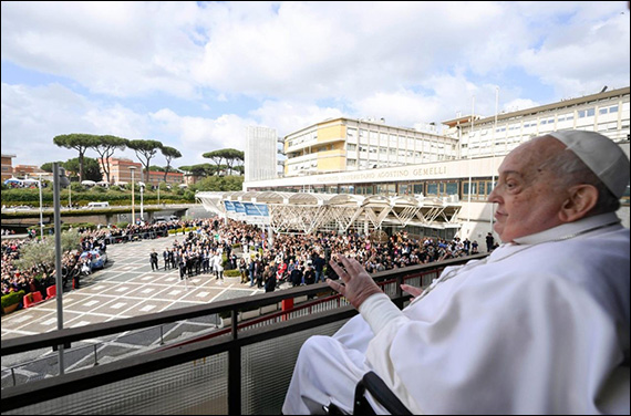 În acest timpul lung de internare, am avut ocazia de a experimenta răbdarea Domnului, pe care o văd reflectată în grija neobosită a medicilor şi a lucrătorilor sanitari, precum şi în atenţiile şi în speranţele rudelor bolnavilor. Această răbdare încrezătoare, ancorată în iubirea lui Dumnezeu care nu dispare, este într-adevăr necesară pentru viaţa noastră, mai ales pentru a înfrunta situaţiile mai dificile şi dureroase.