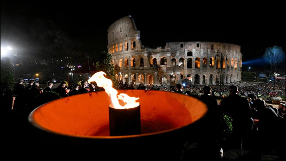 În meditaţiile scrise pentru tradiţionala Via Crucis din Vinerea Mare din Colosseum, prezidată de cardinalul Baldo Reina pe 18 aprilie 2025, Papa Francisc explică faptul că drumul spre Golgota este coborârea pe care Isus a făcut-o “spre lumea pe care Dumnezeu o iubeşte”. Cristos, “bătut în cuie”, se plasează “în mijlocul contrariilor” şi le aduce la Tatăl, pentru că crucea sa “dărâmă ziduri, anulează datorii” şi “stabileşte reconcilierea”. În faţa unor economii inumane, alcătuite din calcule, logică rece şi interese nemiloase, schimbarea de direcţie este să ne întoarcem la Mântuitorul.