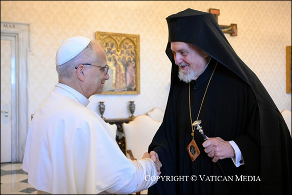 Sunt deosebit de bucuros să adresez bun-venit, pentru prima dată după alegerea mea ca episcop de Roma şi succesor al apostolului Petru, delegaţiei voastre care reprezintă Biserica soră din Constantinopol, în timp ce celebrăm sărbătoarea sfinţilor Petru şi Paul, patroni ai Bisericii de Roma. Acest schimb tradiţional de delegaţii între cele două Biserici, cu ocazia sărbătorilor respective ale sfinţilor patroni, este semn al comuniunii profunde care există deja între noi şi o reflectare a legăturii de fraternitate care îi uneşte pe apostolii Petru şi Andrei.