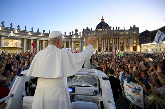 Coruri de bucurie însoţesc tot parcursul papei, iar la sosirea pe platoul bazilicii vaticane, acesta răspunde în spaniolă entuziasmului tinerilor: “Strigătele voastre, toate pentru Isus Cristos, vor fi auzite până la capătul lumii”. Şi continuă: “Lumea are nevoie de mesaje de speranţă. Voi sunteţi acest mesaj şi trebuie să continuaţi să daţi speranţă tuturor”. “Sperăm că voi toţi veţi fi mereu semne de speranţă în lume!”, îşi doreşte apoi pontiful, adresându-se tinerilor în italiană, care “comentează” fiecare cuvânt al său cu strigăte de aprobare şi aplauze. “Astăzi începem. În zilele următoare, veţi avea ocazia să fiţi o forţă care poate da harul lui Dumnezeu, mesaj de speranţă, o lumină pentru oraşul Roma, pentru Italia şi pentru întreaga lume”, adaugă Leon al XIV-lea, care invită apoi: “Să mergem împreună cu credinţa noastră în Isus Cristos. Strigătul nostru trebuie să fie şi pentru pacea în lume”. Papa le cere apoi celor din piaţă să repete: “Vrem pacea în lume”. Toţi răspund: “Vrem pacea în lume”.