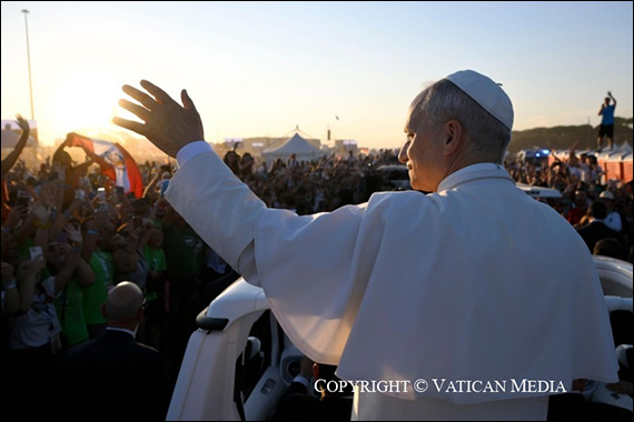 În acest sens, acum douăzeci şi cinci de ani, chiar aici, unde ne aflăm, Sfântul Ioan Paul al II-lea a spus: “Pe Isus îl căutaţi atunci când visaţi fericirea; el este cel care vă aşteaptă atunci când nimic din ce găsiţi nu vă satisface; el este frumuseţea care vă atrage atât de mult; el este cel care vă provoacă prin acea sete de radicalitate care nu vă permite să vă adaptaţi la compromis; el este cel care vă determină să depuneţi măştile care fac viaţa falsă; el este cel care citeşte în inima voastră deciziile cele mai adevărate pe care alţii ar vrea să le sufoce” (Veghe de rugăciune pentru a XV-a Zi Mondială a Tineretului, 19 august 2000). Frica lasă apoi spaţiu speranţei, pentru că suntem siguri că Dumnezeu duce la bun sfârşit ceea ce el începe.