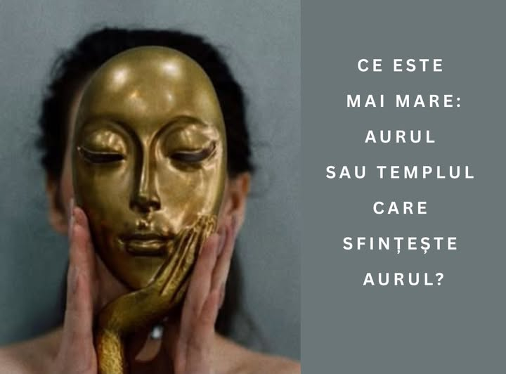 Matei 23,16-17 Vai vouă, călăuze oarbe care ziceţi: «Dacă cineva jură pe templu, nu-i nimic; dar, dacă cineva jură pe aurul templului, este dator să-l ţină!» Proşti şi orbi! Ce este mai mare: aurul sau templul care sfinţeşte aurul?