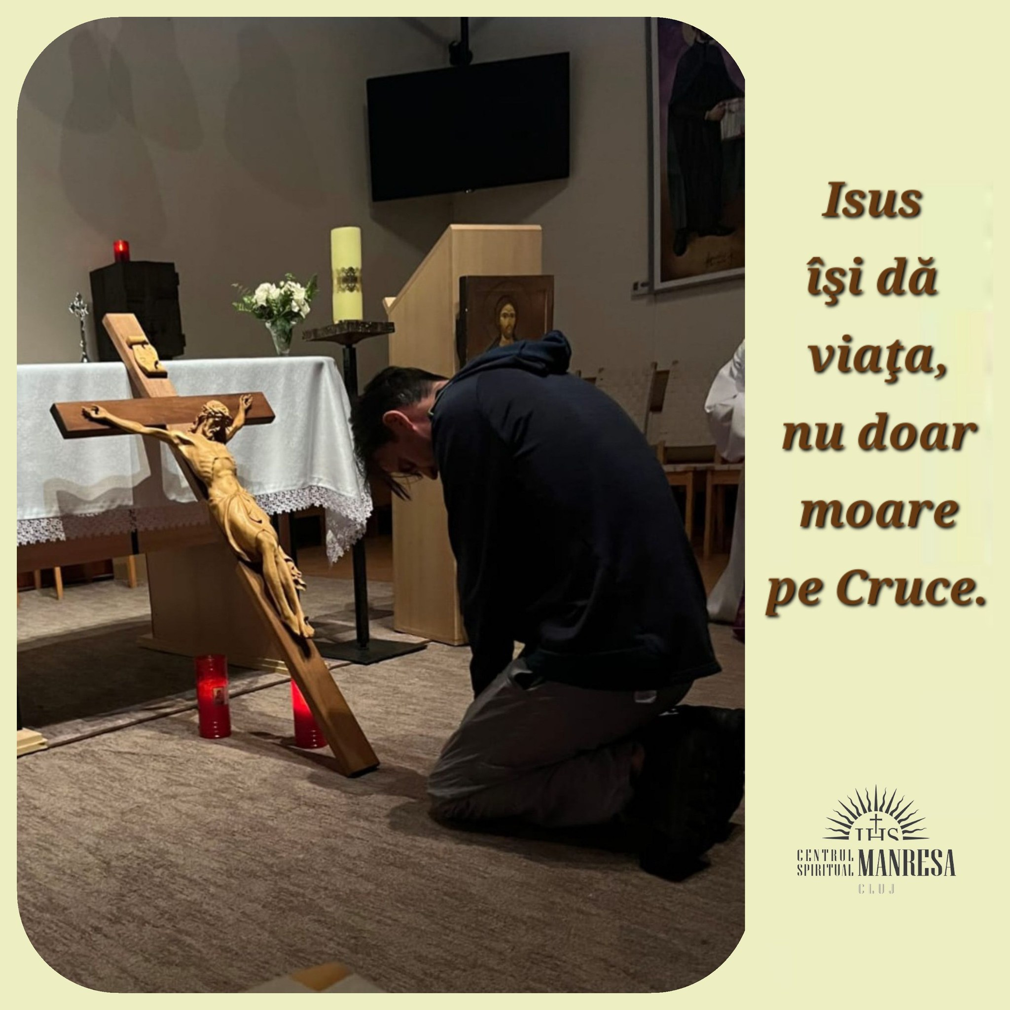 Isus îşi dă viaţa, nu doar moare. Se dăruieşte; iar dăruirea Lui nu este rezultatul slăbiciunii, ci al unei libertăţi totale. El nu este victimă a circumstanţelor, ci autor al unui dar, iar a sluji înseamnă a intra în această libertate, nu doar a tânji la nesfârșit dupa ea.